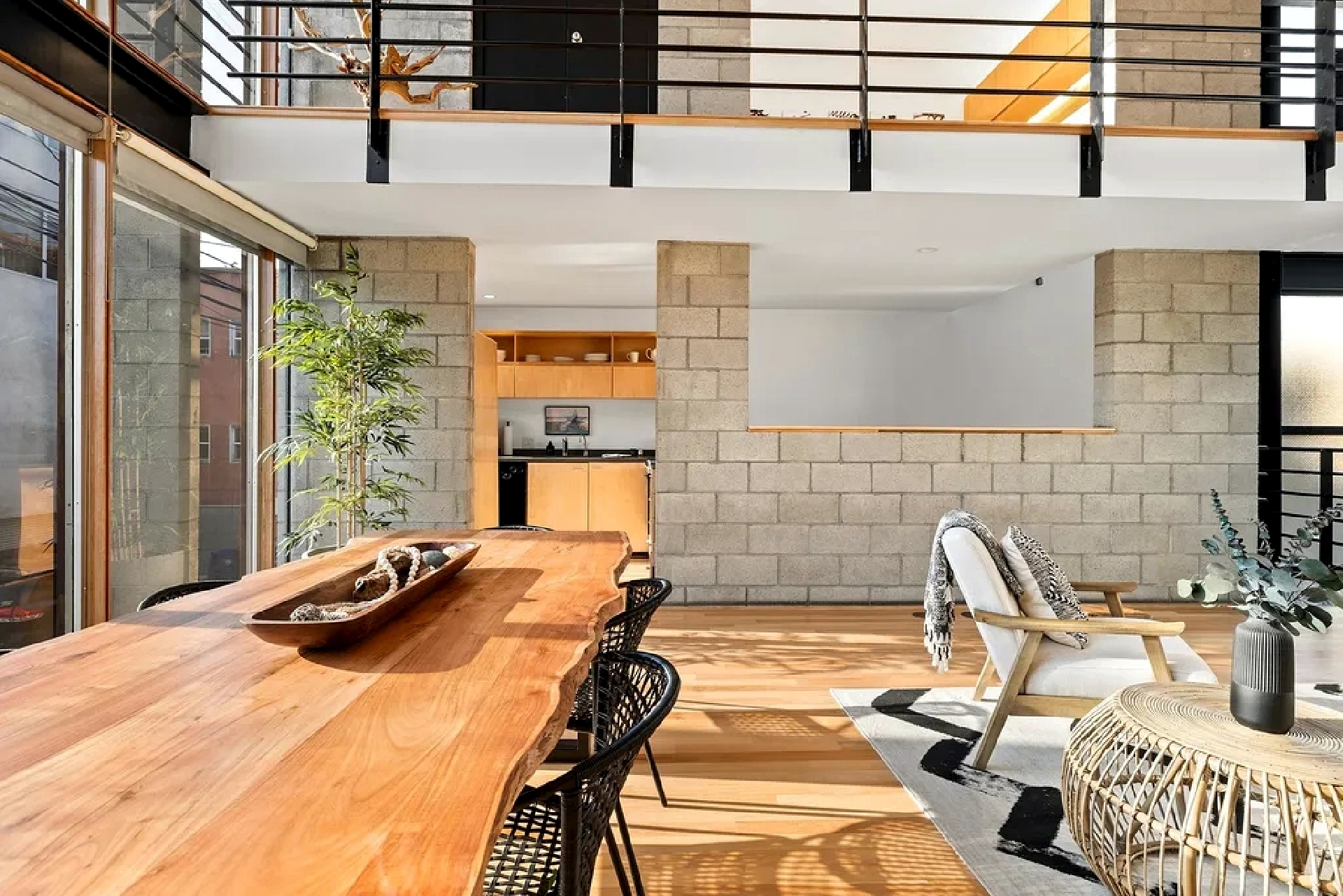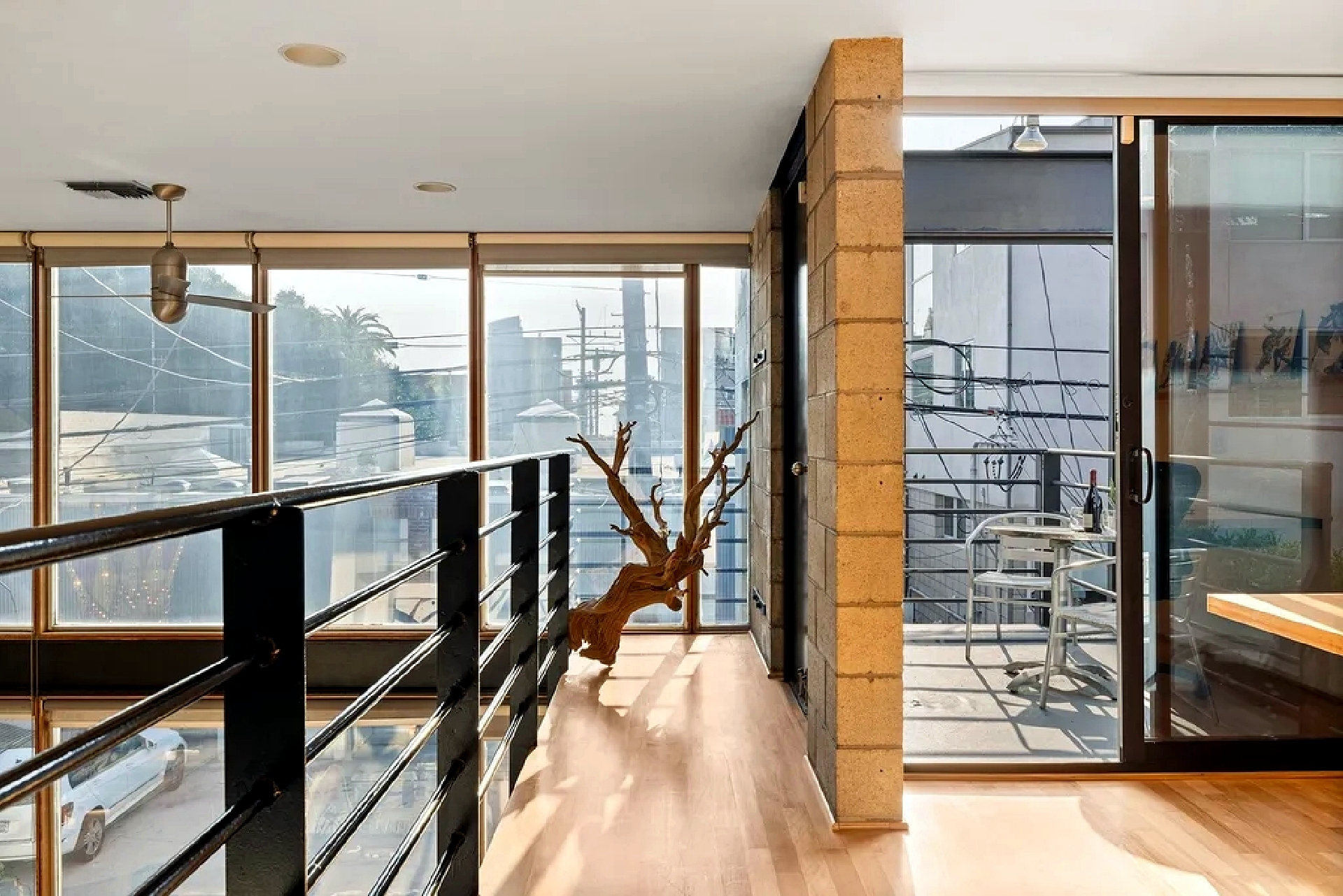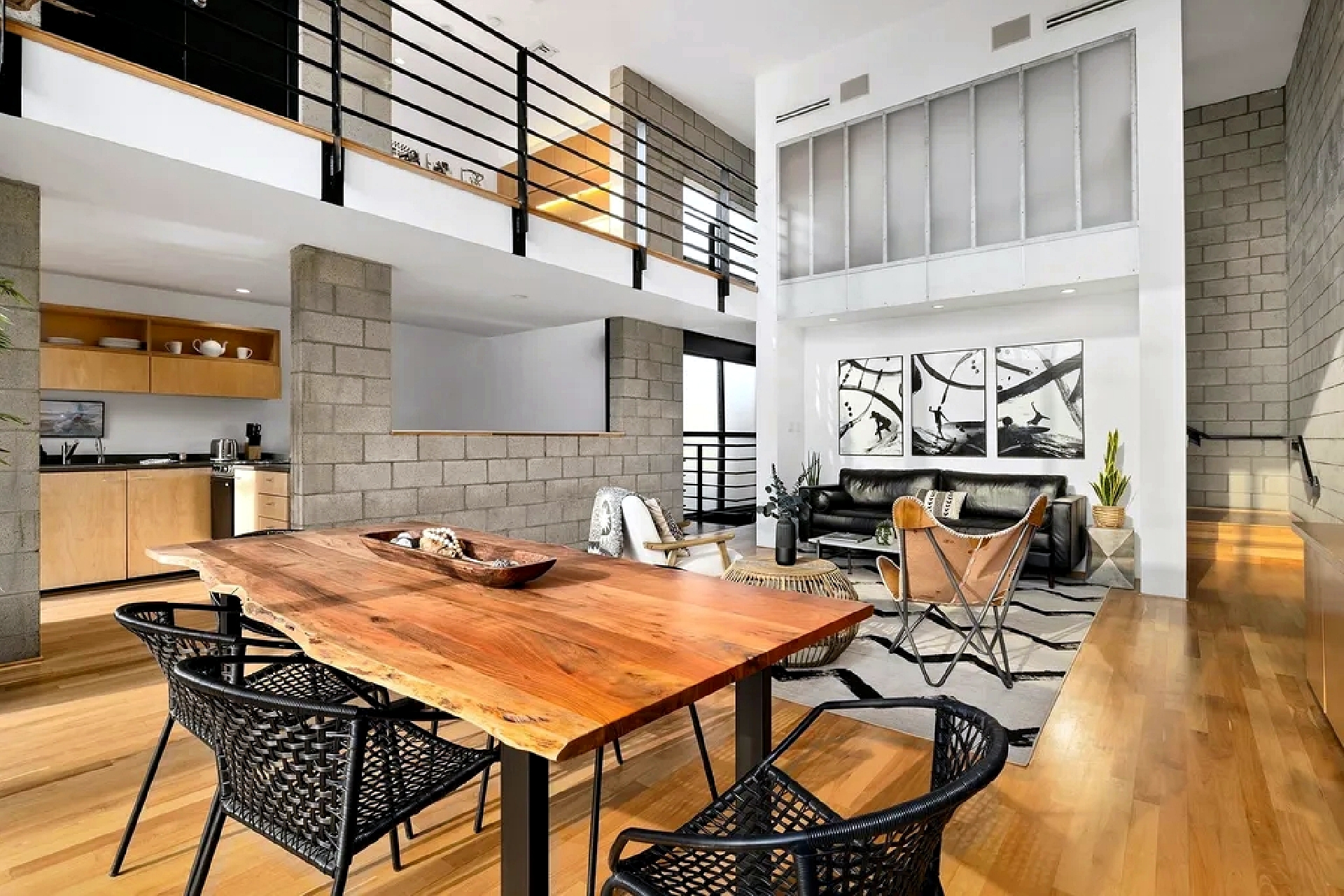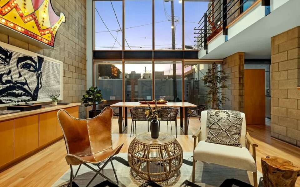 Modern beachside living defines this multi-level residence located just steps from the shoreline and iconic local landmarks. The home features high ceilings, art-filled interiors, and quality furnishings that create a bright and inviting atmosphere throughout. Multiple living levels provide flexibility for relaxation and remote work, including open living and dining spaces with large windows that bring in abundant natural light. A fully equipped kitchen supports everyday comfort, while bedrooms are thoughtfully arranged across levels to offer privacy and restful retreats. An upper-level office area opens to a private patio, providing a quiet outdoor space for work or relaxation. The home includes convenient on-site parking directly in front of the residence and is ideally situated near the beach, shops, dining, and local attractions, offering a vibrant coastal lifestyle with comfort and ease.