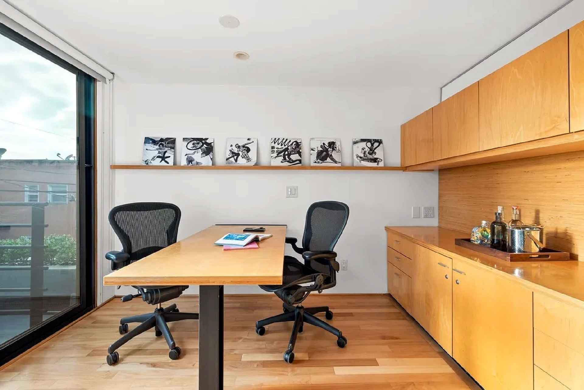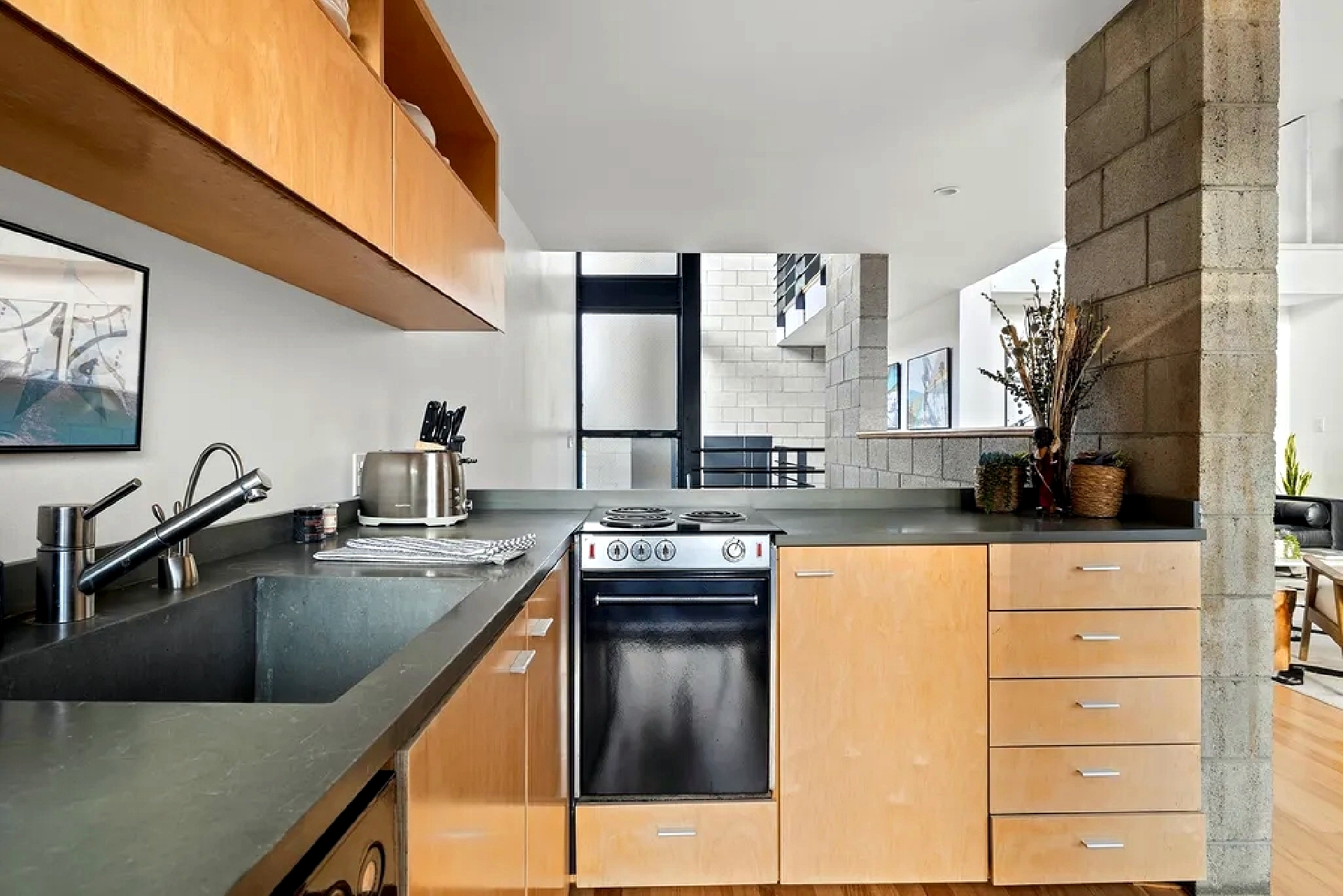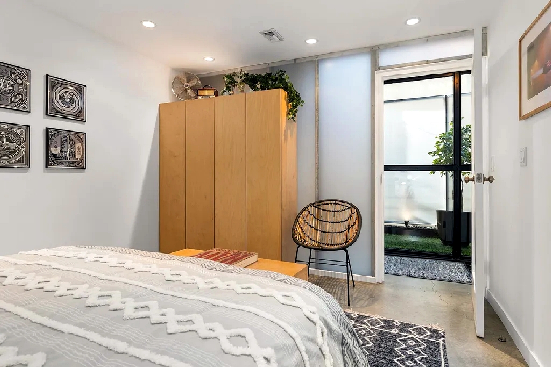 Modern beachside living defines this multi-level residence located just steps from the shoreline and iconic local landmarks. The home features high ceilings, art-filled interiors, and quality furnishings that create a bright and inviting atmosphere throughout. Multiple living levels provide flexibility for relaxation and remote work, including open living and dining spaces with large windows that bring in abundant natural light. A fully equipped kitchen supports everyday comfort, while bedrooms are thoughtfully arranged across levels to offer privacy and restful retreats. An upper-level office area opens to a private patio, providing a quiet outdoor space for work or relaxation. The home includes convenient on-site parking directly in front of the residence and is ideally situated near the beach, shops, dining, and local attractions, offering a vibrant coastal lifestyle with comfort and ease.